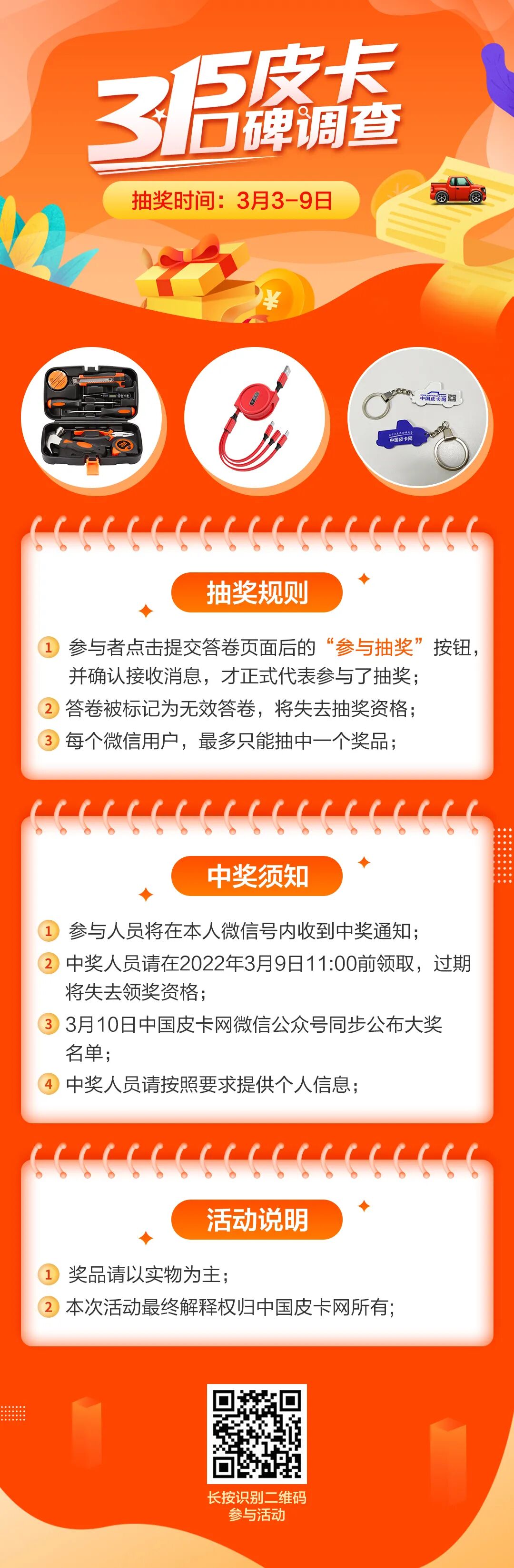 “3.15皮卡口碑调查”启动:居然还有奖品拿!