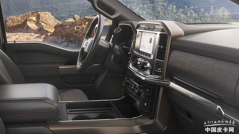 车辆内部变化不大,加入了青铜色的配色,包括座椅缝线。配置方面,F-150响尾蛇在入门版的基础上增加了一些FX4选装包的配件,包括电子后桥差速锁,陡坡缓降控制系统以及偏向越野调校的减震器。另外还有底盘护板等配件,让车辆在崎岖路况更有保障。