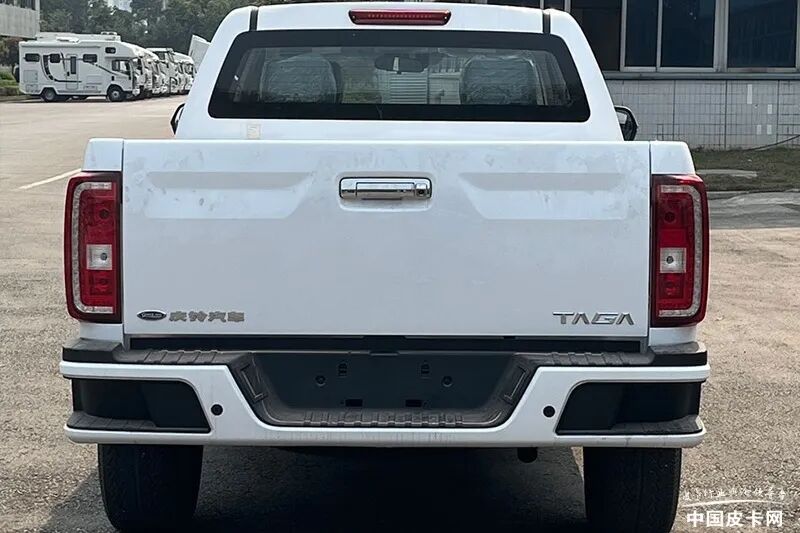 过审新车的车身尺寸为:5692×1877×1840mm,货箱尺寸为:1800×1540×480mm,轴距为3406mm。车型总质量为:2915/3020kg,车型整备质量为:2105/2210kg,额定载质量为485kg。轮胎规格为:265/65R18,接近角/离去角为33°/26°。可选装不同前格栅、防滚架、前雾灯、前雷达、货箱盖、不同轮辋、前部摄像头、侧面摄像头、货箱宝、不同外门把手等配置。