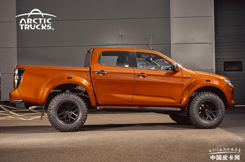 当然北极卡车改装的皮卡肯定不是用来看的,所以该车在底盘看不到的部分也进行了改动,包括换装了Bilstein高性能悬架,前部是定制的弹簧和减震器,后部配备可调防倾杆以及加长吊耳。为了容纳下如此巨大的轮胎,该车也对轮拱前后进行了拓展,来满足轮胎的行程。Arctic Trucks专属的侧踏版也能在一定程度上防止越野过程中对车门底部的磕碰。