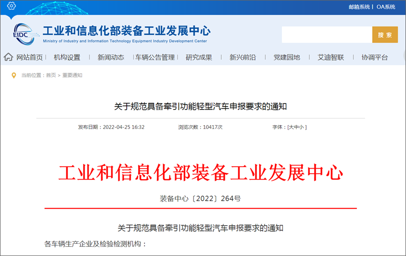 工信部发布规范牵引资质车型新要求