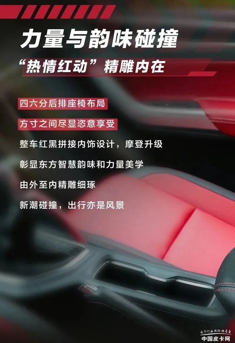 车辆内部并未曝光太多细节,预告信息显示该车将会配备四六分后排座椅,以及红黑拼接内饰设计,增加车内的整体质感。从放出的内饰细节可以看出,新车的内饰部分或许也会有所改变,整体更加乘用化。