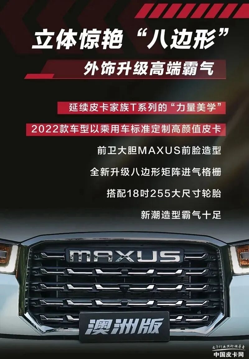 近日,上汽大通宣布旗下皮卡车型T70澳洲版的新款车型即将上市。从预告信息来看,新车外观最大的特点是换装了全新的八边形矩阵进气格栅,这与我们之前获取的专利图和谍照保持一致,使整车看上去更大气。而从内饰部分图片也可以看出,新车内部设计或许也会进行一些相应的更加乘用化的调整。