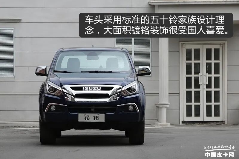 汽油版本铃拓的外观与现款柴油版本铃拓基本保持了高度一致。全新铃拓采用了老款D-MAX的刚毅霸气的整体设计,经典的外观设计给人很强的亲切感,也保证了铃拓纯正的五十铃血统。并且新车提供了7种车身配色可供大家选择。