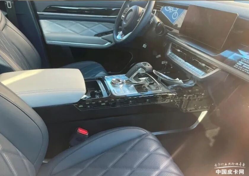 谍照车型保持现款产品乘用化风格的同时有着更加科技化的延展。悬浮式中控屏和液晶仪表盘的搭配,让人很难第一时间与传统国产皮卡内饰相关联。除此外,车辆的中控面板以及挡把都发生了不小的变化。