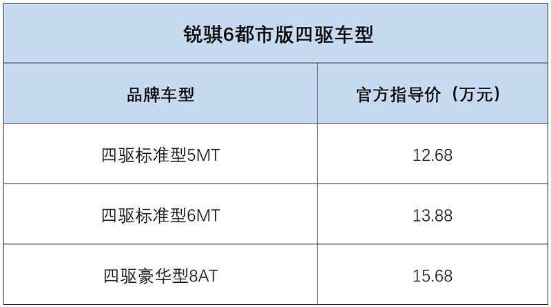 据了解,此次推出的车型在原有锐骐6都市版的基础上,加装了后桥伊顿机械自动差速器,可通过轮胎扭矩分配调节优化驱动力,提升脱困能力,加强车辆的行驶通过性能。