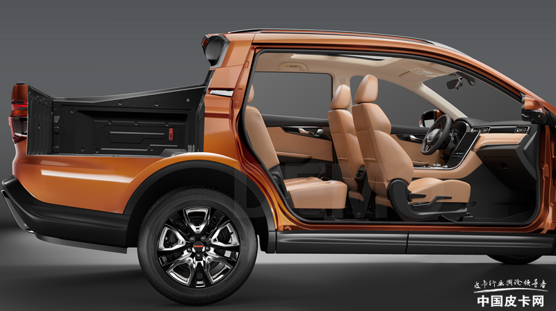 VX7皮卡基于乘用车平台打造,采用承载式车身设计和前麦弗逊/后多连杆四轮独立悬架的配置,与传统的非承载式皮卡有所区别。也正是由于它的这个特征,VX7在整体形态上更像是一款家用皮卡,基本与城市SUV水平一致。