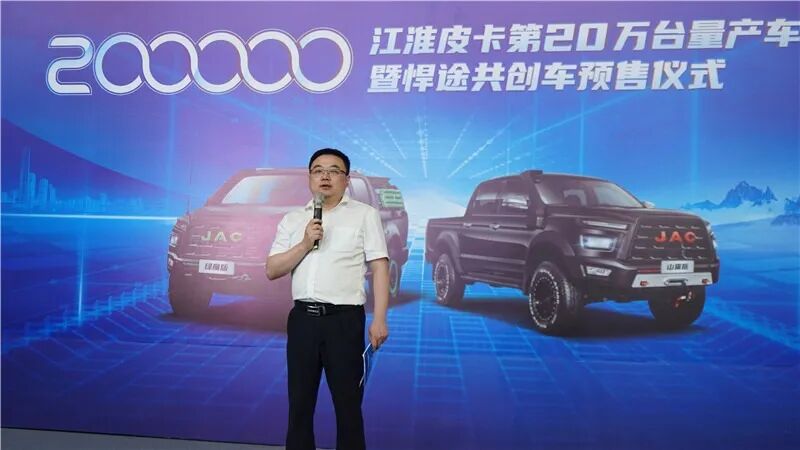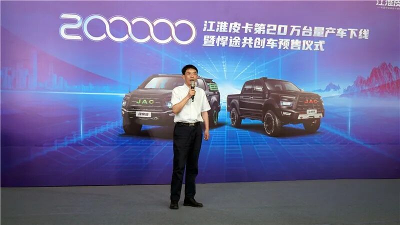 活动现场,江汽集团皮卡公司副总经理、扬州江淮轻型汽车有限公司总经理赵涛首先致欢迎辞。他表示,第20万台量产车下线,是江淮皮卡发展史上的一件大喜事,作为江汽集团重要的业务板块,江淮皮卡已成为集研产销于一体,产品线覆盖两四驱、商乘用、高中低端、柴汽油和新能源的皮卡品牌。未来将与用户一起共创,带来更优质的产品、更贴心的服务。