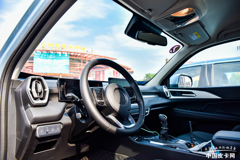金刚炮药商版的内饰与普通版车型一样,精致与时尚并存,看上去让人赏心悦目。真皮多功能方向盘功能丰富,仪表盘和中控屏也采用了时下流行的双大屏设计,所有车内的设计都不会让你觉得这是台皮卡。屏幕下方的大尺寸按键功能十分清晰,也方便盲操作。四驱车型的驱动模式切换按键也在此功能区。