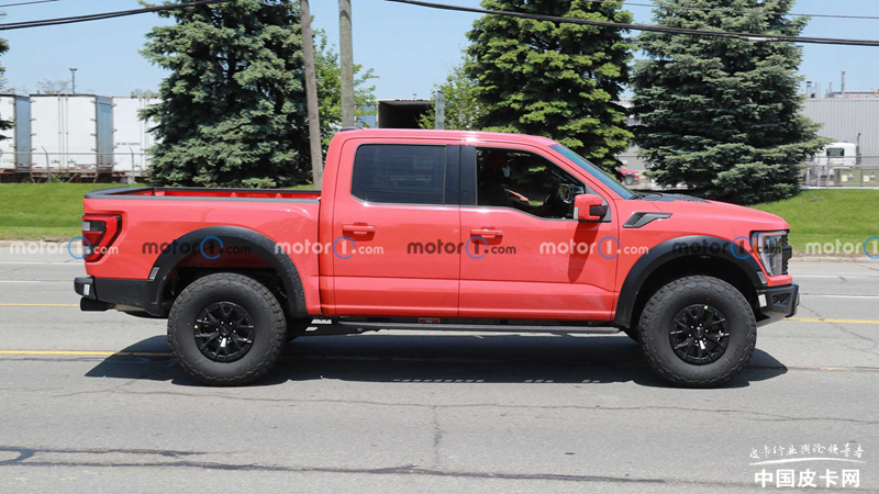 车身侧面和尾部与猛禽差异不大,但在细节部分能够看出还是有区别的。例如尾部的双出排气尺寸更大一些,这也侧面证明了这款车的动力将不是猛禽的V6发动机,排量更大。在悬架部分也能看到,谍照车型后悬架的下摆臂也与现款猛禽有所不同。