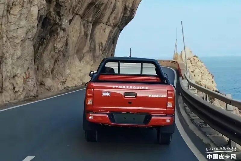 车身侧面和尾部几乎没有更改,与江淮T8保持了绝对的统一。侧面带有黑色轮拱防擦条,就连货箱部分的防滚架造型也与部分原型车一致。车尾的方形尾灯标志性十足,同样在尾门上方增加了SPORT EQUIPE品牌标识,左侧带有小logo,右侧为皮卡的英文。