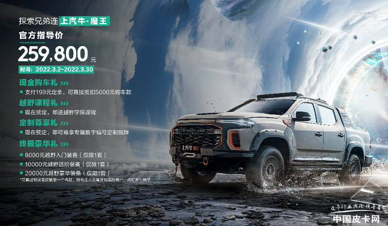 上汽T90在去年3月正式上市,时隔一年之后的今年3月份,上汽带来了基于T90官方改装的越野风格产品牛·魔王。这款车在外部越野配置方面拥有十足的硬核设计,是众多原厂改装皮卡中非常亮眼的一款。