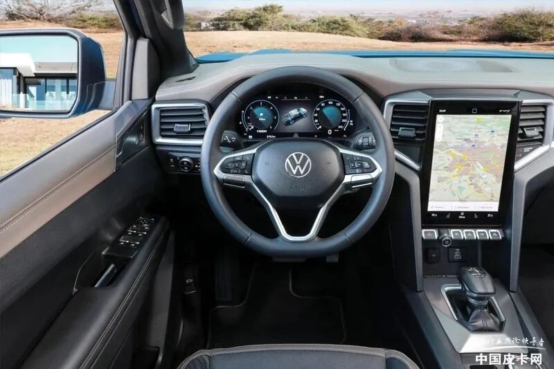 内饰方面,全新Amarok采用T形中控布局,整体结构规整,符合传统皮卡调性。配置方面,新车提供有10.1英寸/12英寸的竖向中控屏可供选择,内置福特SYNC4娱乐系统,屏幕下方为传统按键。此外,新车同时配备前排座椅10向电动调节,顶配版本集成哈曼卡顿音响以及多达几十种驾驶辅助功能。
