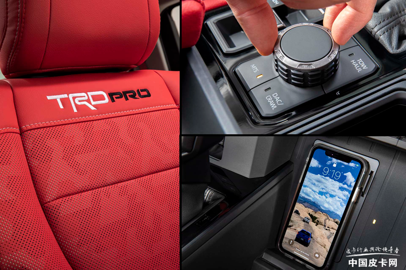 与此同时,全新坦途更多的配置消息也被曝光,其中包括TRD Pro车型专属的红色皮质座椅,还有无线充电、越野专属的全地形辅助驾驶系统、蠕行模式、陡坡缓解等功能。另外,专注越野的车型还将匹配尺寸为285/65的全地形轮胎。