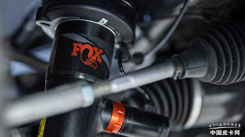 底盘部分依然保留了猛禽的精髓FOX减震,但由于更换了重量更大的V8发动机,猛禽R的底盘零部件也做了细微调整,比如更换了更强的前桥和更厚的驱动轴,以及略硬的前弹簧来承托发动机。后部依然为五连杆悬架系统,带有超长的拖臂、潘哈德连杆以及24英寸的螺旋弹簧等。