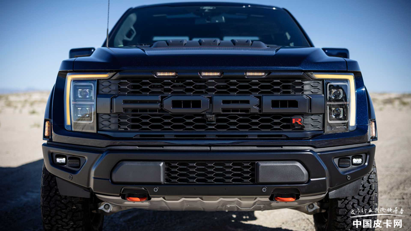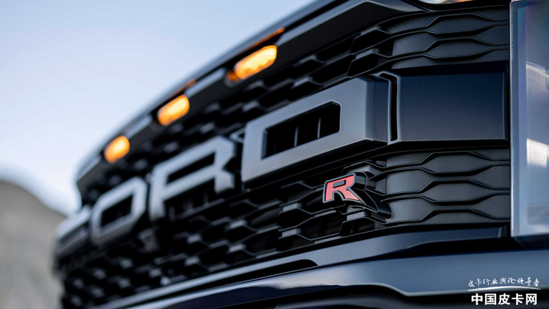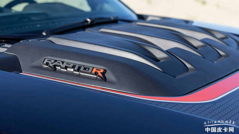 外观部分,猛禽R与已经上市的猛禽区别不大,重点在于细节部分。前脸依然是方正霸气的风格,FORD组成的进气格栅右下方带有醒目的红色R标志,证明它与普通猛禽的不同。发动机盖上方的隆起相比V6猛禽要高出1英寸(约2.5厘米),以便为发动机提供更好的散热。