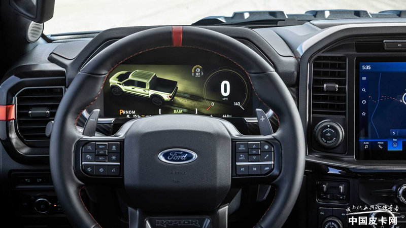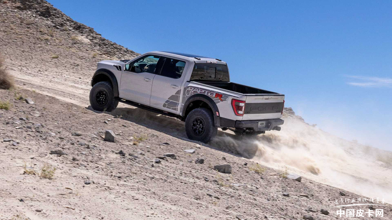 也许你会发现,猛禽R的V8发动机动力参数相比TRX的要小一些,后者拥有523 kW和881N·m的数值。但福特官方宣称,猛禽R的整备重量为5950磅(约2.7吨),相比TRX的6350磅(约2.9吨)更轻,所以这一点动力差异几乎可以忽略不计,并且推重比更高。这一点倒是与性能车的“宁减1公斤,不多10马力”的十字箴言异曲同工。