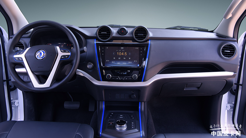 外观上,福田大将军电动皮卡将品牌FOTON字母标嵌入格栅当中,配合贯穿整个面板的蓝色装饰条,凸显新能源车型的身份。内饰方面,福田大将军电动皮卡整体采用黑色系高亮装饰件,也做出了与燃油版不同的风格。
