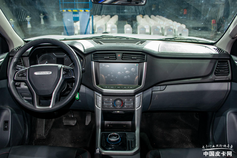 庆铃达咖EV外观和内饰与燃油版庆铃达咖皮卡相同,前脸依然采用了大面积六角格栅,搭配大量镀铬装饰增加美观度,中间为“QINGLING”字样车标,凸显自主特征。同时,车前大灯组下沿的LED灯带、后保险杠两端的登车踏板等设计亮点依然被保留。与前几款车型相比,庆铃达咖EV很难辨认出是纯电动皮卡。内饰部分同样与燃油版并无区别,中控布局规整,功能区层次分明,8寸触控式液晶屏支持蓝牙通话、导航和倒车影像等。