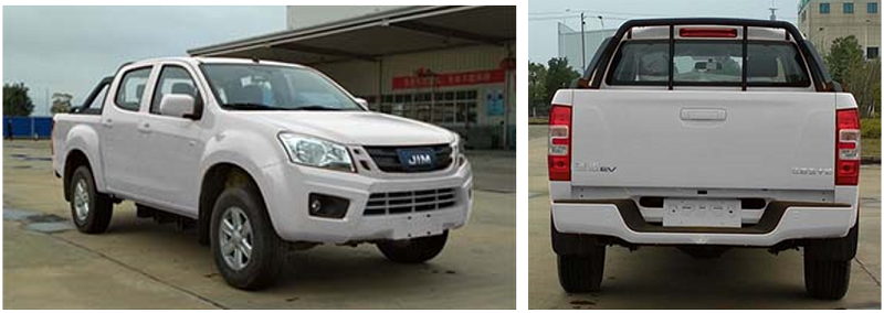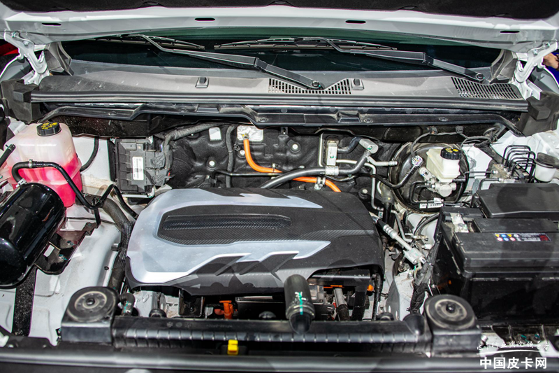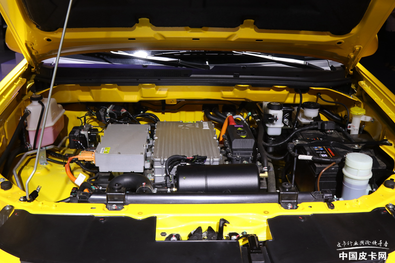 江淮纯电动皮卡i3使用合肥国轩高科动力能源有限公司生产的磷酸铁锂蓄电池,电池能量为60.858kWh,快充1.5h即可完成80%,综合续航里程达265km。动力部分采用永磁同步电机,额定功率40kW,峰值功率110kW,峰值扭矩达330N·m,最高车速90km/h。