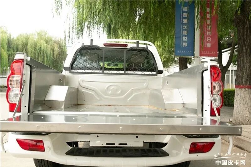 长城在去年与前面针对水产行业同步推出的,还有风骏5/风骏7基建版车型。这两款车型是以风骏5、风骏7柴油进取型为基础进行研发的车型,货箱进行了加强。基建版的439不锈钢车箱宝的钢板厚度达1.5mm,具有高抗击、高腐蚀能力。高锰钢底盘护板厚3.0mm,可以防托底、防磕碰。此外还装有护栏防护网,该配置能够有效保护后玻璃,可承受1000N冲击,防止货箱货物破窗而入。这样特殊的设计完全符合建筑工程行业的装载需求。