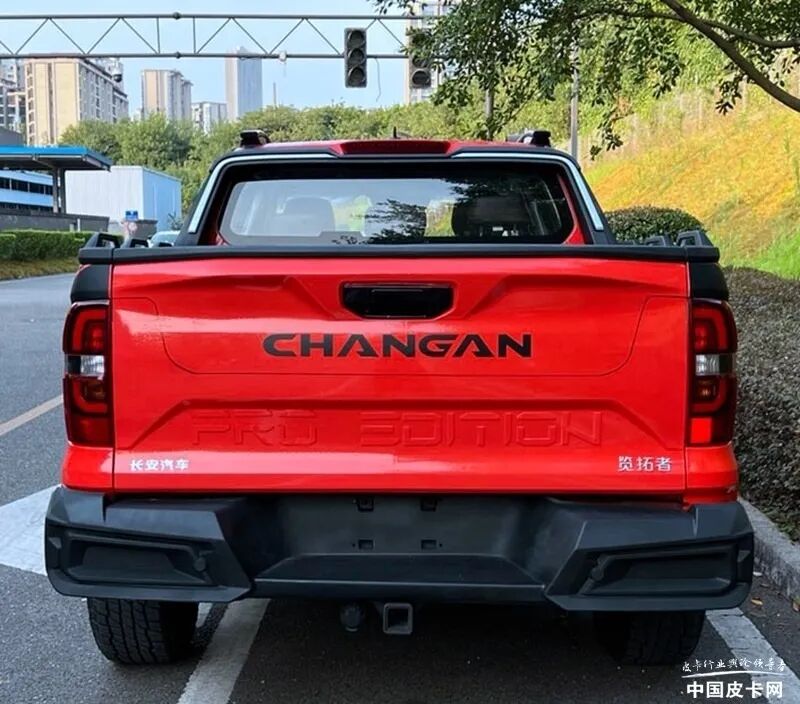 在越野版车型上,前中网右侧还加入了PRO EDITION的字样,预计这也是越野版车型的特殊命名方式,前杠部分增加了绞盘的配置,左侧A柱部分增加涉水喉,车尾增加拖车杠方口和拖车电源接口。根据工信部信息显示,长安新皮卡会提供标轴、长轴两个版本车型,标轴版车型车身尺寸为5350*1945(1980)*1865(1875)mm,轴距3180mm,并且拥有后螺旋弹簧的悬架形式,货箱尺寸1600*1595*500mm;长轴距版车型长宽高分别为5600*1930*1865mm,轴距3430mm,货箱尺寸1850*1595*500mm。