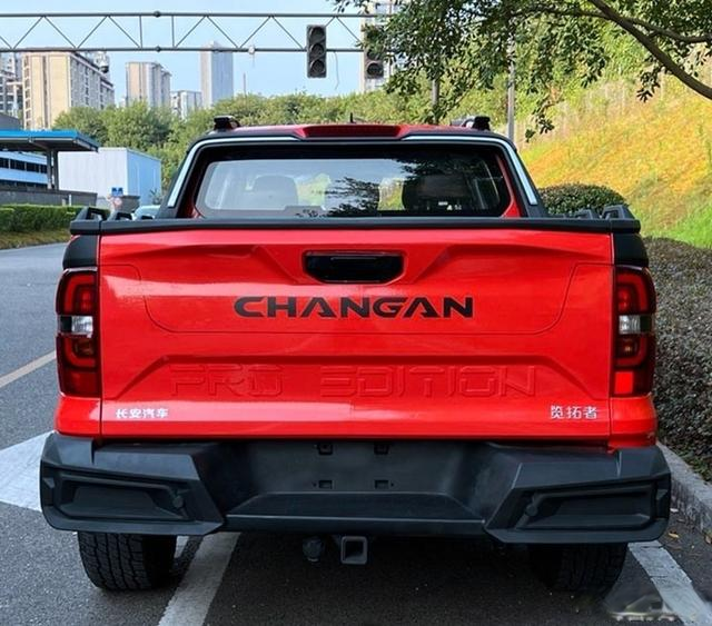 新车前脸部分换装了大尺寸倒梯形进气格栅,中部采用了长安乘用车的V字车标,在前大灯样式上还采用了贯穿式的灯带设计,这在皮卡上非常少见。越野版车型在前中网右侧还加入了PRO EDITION的字样,前杠部分配有绞盘,左侧A柱部分增加涉水喉,车尾增加拖车杠方口和拖车电源接口,并拥有2.5吨牵引质量。