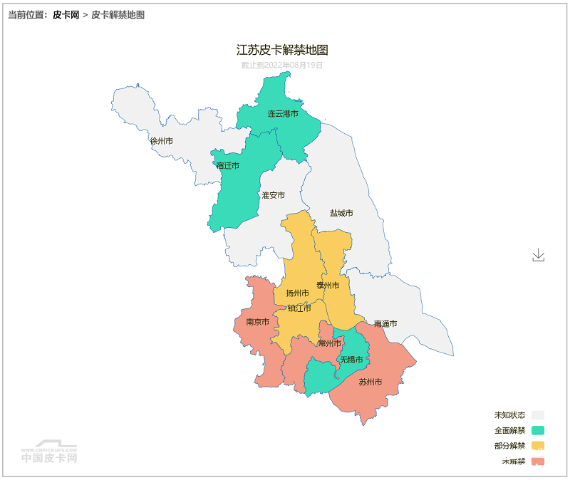 今年以来,江苏在皮卡解禁上响应积极,不久之前,无锡全面取消皮卡通行限制,成为省内解禁力度最大的城市之一;今年3月,扬州也加入皮卡解禁行列,而近期镇江市交警部门提出,考虑全面放开多用途货车(皮卡车)限行规定。更早之前,连云港、宿迁均已不限行皮卡,江苏省13市中已有半数城市响应皮卡解禁。