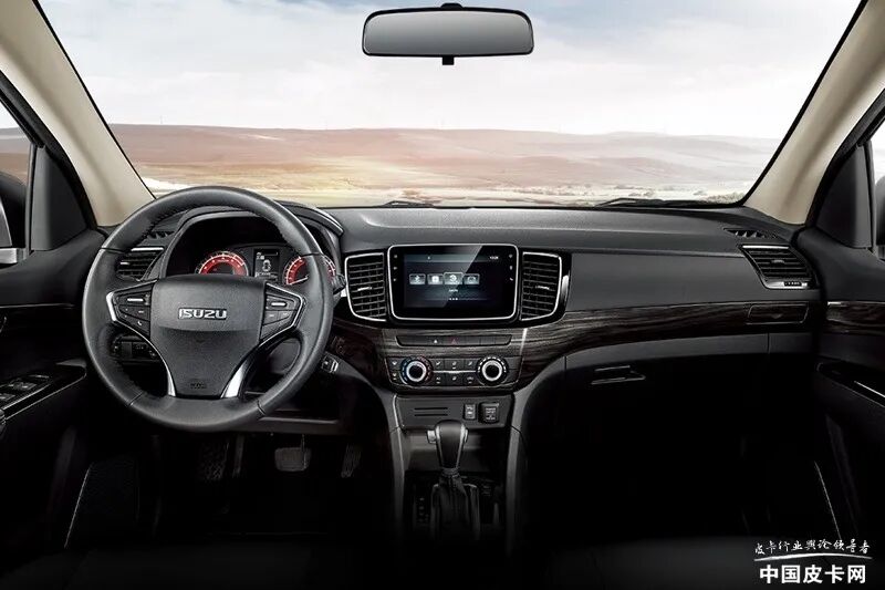D-MAX的车内变化更大,中控台进行了重新设计,更具时尚感。全新的三幅多功能方向盘配备定速巡航、音响、蓝牙等控制按键,仪表盘也变成了液晶显示屏的样式。中控台中部设计了9寸多媒体显示屏,更有档次感,带有语音控制、车联网、车机互联等功能。下方的空调控制区域采用了横排式按键,非常直观,操作也很方便。