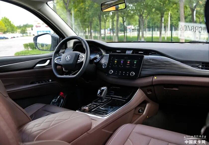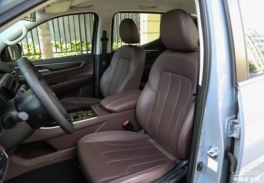 锐骐7运动版的内饰无论是用料还是质感都属上乘之作,大量的软包+木纹饰板将其格调烘托的超出皮卡范畴。多功能平底方向盘集成了语音控制、蓝牙电话、定速巡航等方便驾驶时操作的功能。仪表盘采用了常规的指针+小尺寸液晶屏的样式,通过方向盘上的按键可以切换显示功能。