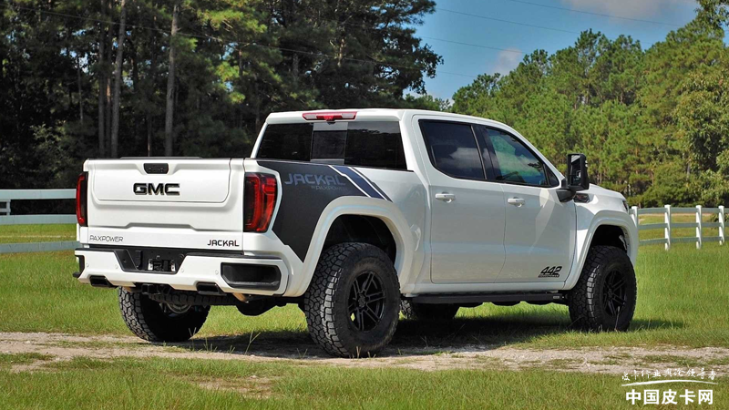 对于福特F-150猛禽来说,此前从来没有将GMC旗下的皮卡当成自己的直接对手。不过,这样的局面似乎可能发生变化。一家位于美国德州的PaxPower改装厂,推出了针对于GMC Sierra 1500的升级套装,在这套Jackal改装件的帮助下,车辆的综合性能得到了强化,经过升级之后,这款改装皮卡已经有了和福特F-150猛禽叫板的资本。