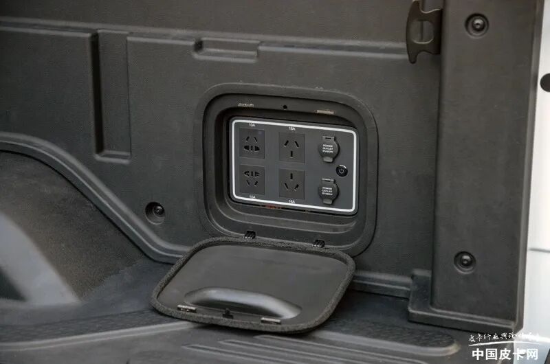 首先就是多种多样的外放电功能,这在以往的传统皮卡上虽然也可以做到,但显然没有雷达RD6做的如此灵活。近几年由于众所周知的原因,郊游露营成为了全国人民比较喜爱的一项户外活动。周末闲暇时光约上三五好友,开车到树林、山谷、小溪等等自然环境中,吃吃喝喝、玩玩乐乐、闲聊一番,成为了解压放松的新方式,而这其中必然会涉及到户外用电场景。以往的解决方法可以是自带充电宝、户外电源甚至柴油发电机等等,但这些产品使用率相对较低,买来也需要一定成本,携带和存放也可能是问题。而如今,雷达RD6在货箱中就集成了多功能放电面板,一下就解决了这些问题。