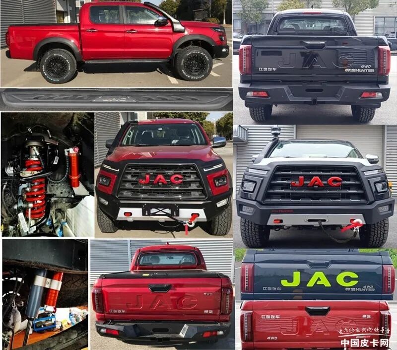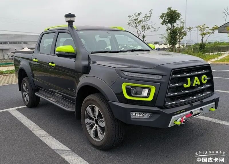 江淮悍途绿魔版在成都车展上已经上市,但其最新的工信部申报信息才曝光。从信息来看,新车将会推出两种不同的额定载质量和牵引质量的车型。外观部分基本上与之前曝光保持一致,都是在悍途之上加装亮绿色装饰,以及一些越野套件,包括绞盘、货箱盖、涉水喉、集沙杯、多种样式的轮毂、货箱防滚架、减震器等,还包括平底货箱车型。