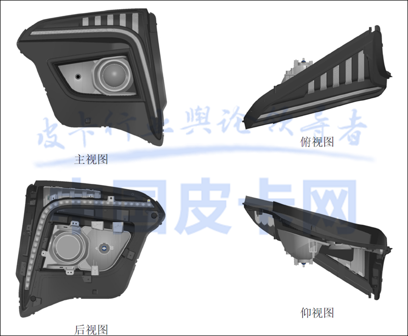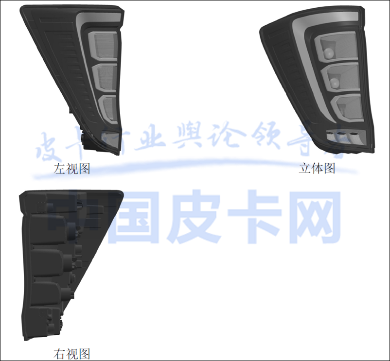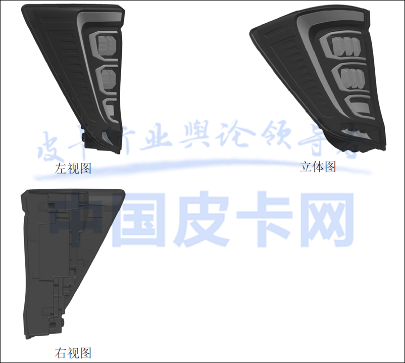 近日,我们在专利局网站获取到了一组重汽集团全新的皮卡车灯专利图,与之前发布上市的VX7完全不同,预示着这将是一款全新的皮卡车型。而在之前的报道中显示,重汽将会推出一款定位高端市场的中大型皮卡,从概念图和专利图来看,这组车灯设计很有可能就是这款即将面市的中大型高端皮卡的零件。