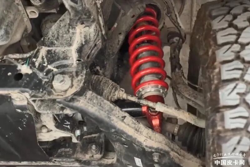 底盘部分可以看出,该车采用了前双叉臂、后多连杆螺旋弹簧整体桥的样式,并且为四驱车型。消息称这款皮卡将会搭载K-MAN减震器,并且正在进行调试,预计这款全新皮卡上市后将会有专属的越野版车型。