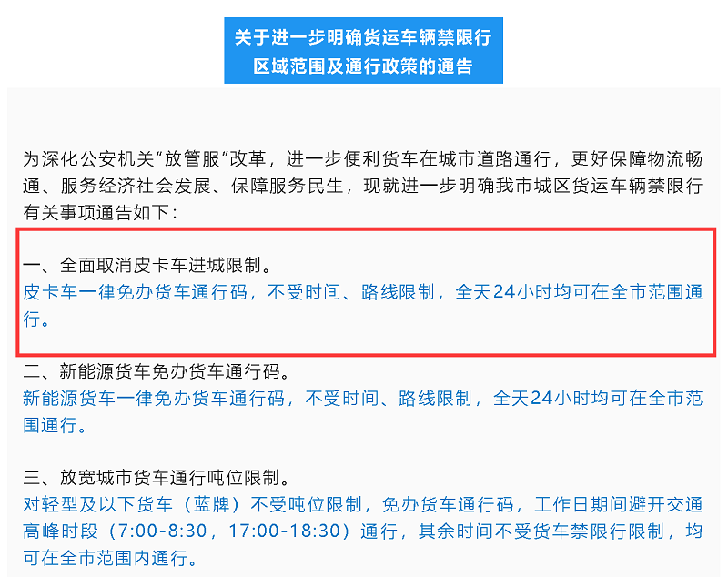 # 准许全域全天通行 广西又一重要城市放开皮卡进城
