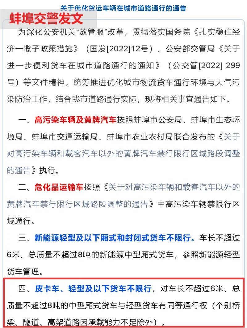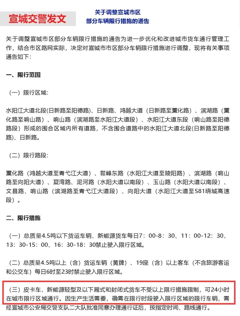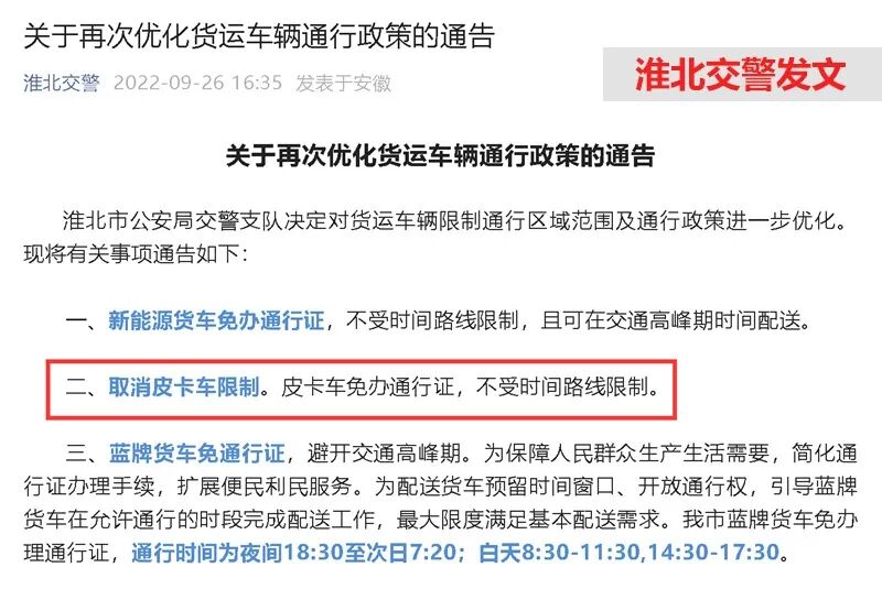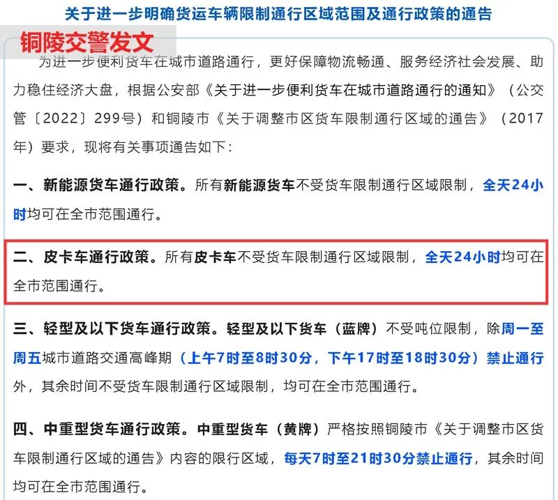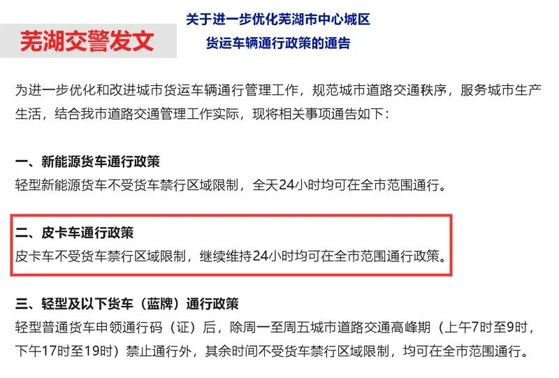 # 可全天全域通行 安徽多市放开皮卡进城