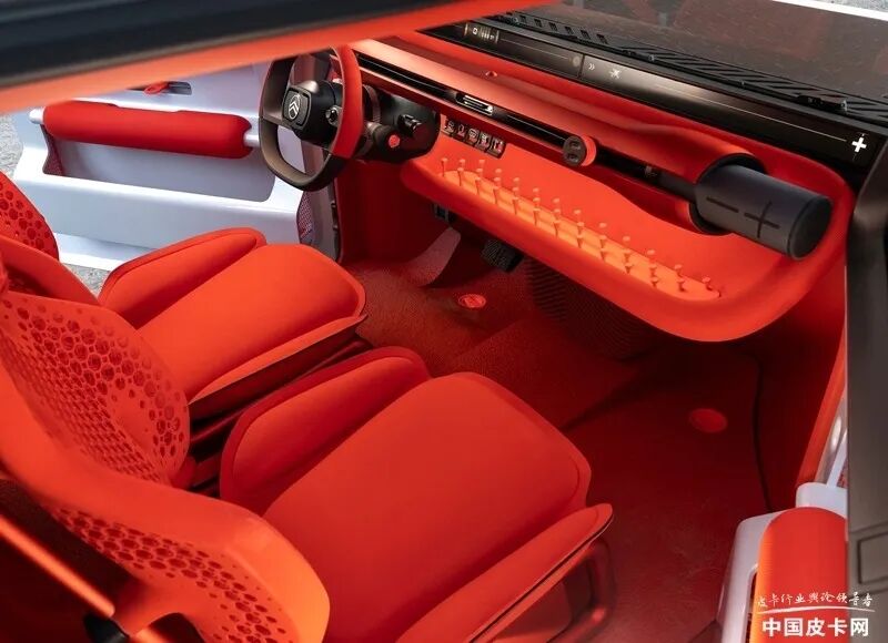 在座椅方面,相比传统汽车座椅整体需要37个零件才能达成,这台车的每一个座椅只需要8个零件。人体主要乘坐的橙色部分,是雪铁龙与巴斯夫公司共同完成,由轻质、100%可回收热塑性聚氨酯(TPU)制成,材料上覆盖了橙色涂层,以确保出色的视觉观感。网状靠背增强了车内空间和光线穿透效果,这些都是乘客舒适性关键因素。