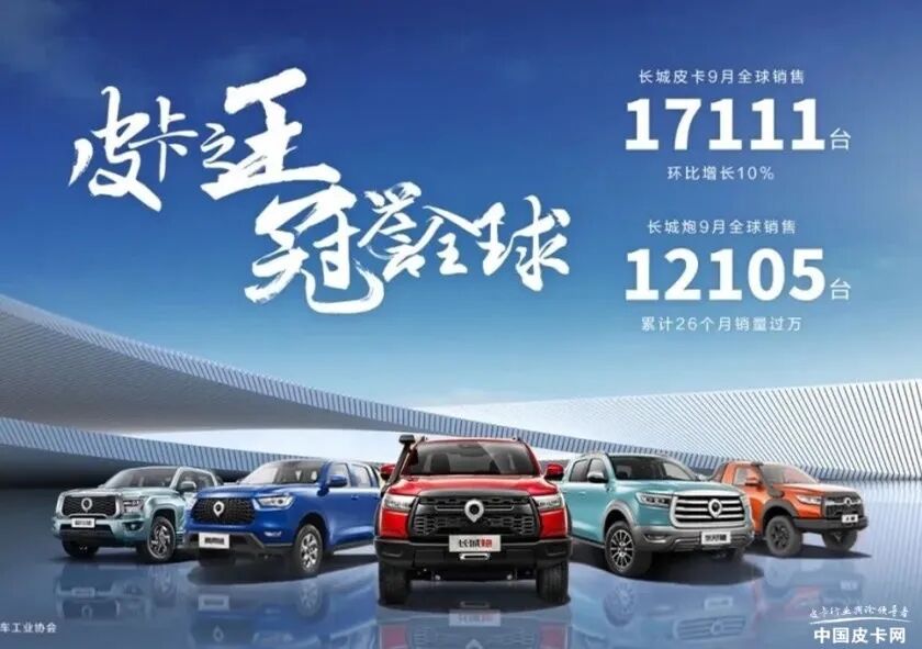 日前,长城皮卡公布了9月的销量数据。过去的9月,长城皮卡全球销售17111台,环比增长10%;1-9月全球累计销售143399台。其中,长城炮9月全球销售12105台,累计26个月销量过万,同比大增21%,蝉联皮卡销量冠军;1-9月,长城炮全球累计销售104356台,突破10万大关,同比增长19%。