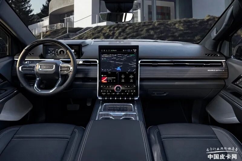 车辆内部仍然保持美系皮卡一直以来的宽大风格,但加入了更有科技感的配置,比如纵向布局的大尺寸多媒体触控屏幕,让它看上去不再是粗糙的实用主义。而通用当家的Super Cruise(超级巡航)自动驾驶辅助系统也在这款车上配备,出现在这样一款纯电动皮卡上显得更符合发展方向。