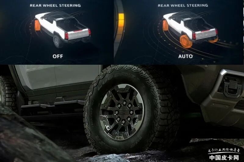 作为与国内消费者离得最近的车型,悍马EV皮卡首当其冲。作为一款经典车型的纯电动演化,悍马EV皮卡在保留了很多老款车型的元素之外,还增加了很多纯电动车型独有的特征。最值得拿来一说的就是其称为螃蟹模式的四轮转向功能,此功能是针对越野情况开发,提高整车的机动性,可以让整车沿车轮对角线方向行驶,从而躲过一些障碍;当然也可以通过前后轮向相反方向转向的功能来降低整车的转弯半径。
