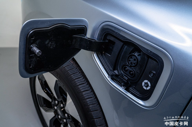 同样是纯电动平台的原因,福特F-150 Lightning有一个巨大的400L的前备箱空间,载重量达到181kg。并且在内部设计了四个120V插座和两个USB充电口,外放电功能十分强大。而后货箱的电源输出也没有缺席,功率最大能够达到稳定的9.6kW。充电口位于轮圈上方的翼子板处,这款车在家用充电桩充电时,如果家中断电,还可以当做电源来使用为家庭供电。货箱内的电源插座也同样存在,提供一个240V和四个120V插座使用。