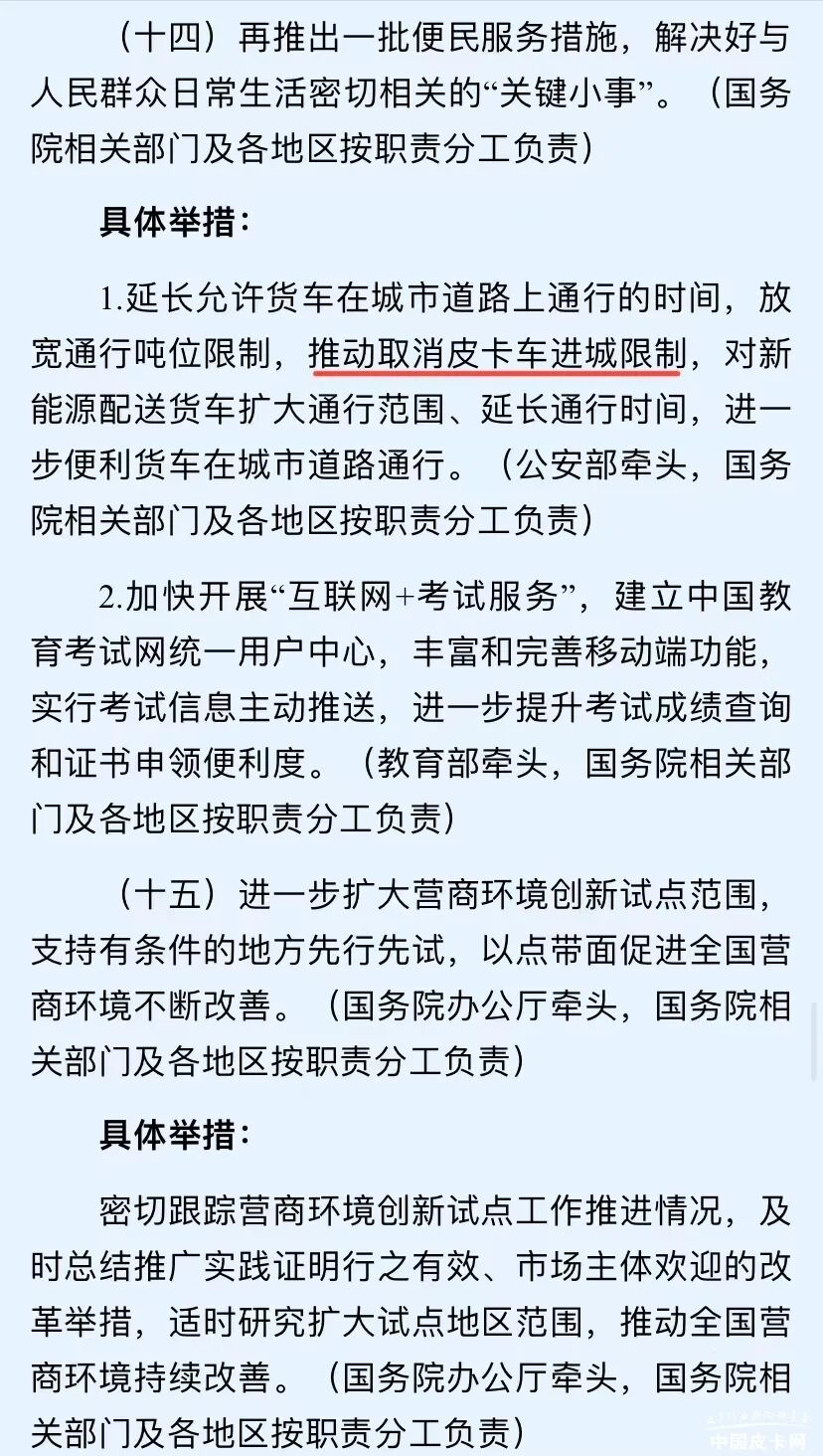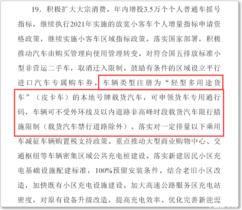 而在今年6月份,湖北省印发的《贯彻落实中央扎实稳住经济一揽子政策措施工作清单的通知》中,再次强调了要求武汉市对皮卡车通行采取精细化管理,但目前并没有出台更宽松的相关政策。