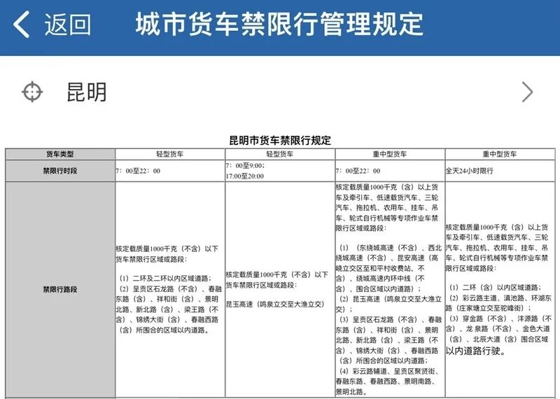 云南作为皮卡大省之一,对皮卡的管理政策一直都非常宽松,目前只有昆明仍然有限行措施,并且保持不变:7-22时禁止进入二环及以内道路,还有一些其他道路所围成的区域。整体来看限行区域比较小,但时间段很长,对皮卡行驶也有一定的影响。