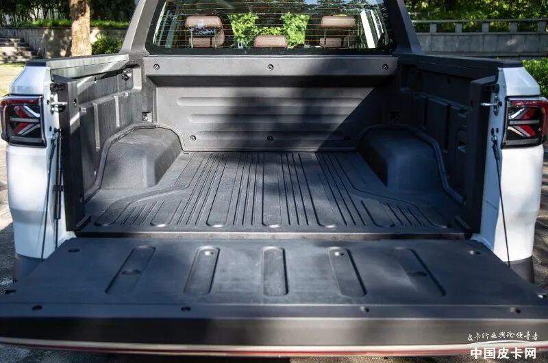 雷达汽车长宽高分别为5260/1900/1830mm,轴距为3120mm,是标准的中型皮卡身材,虽然车身长度相比目前主流的非承载式皮卡略短一些,不过它的货箱尺寸可不小,长宽高分别为1525/1450/540mm。而由于纯电动平台的架构,在保证了货箱大小的同时,车内的驾乘空间也有非常不错的表现,不会出现鱼与熊掌不可兼得的状态。