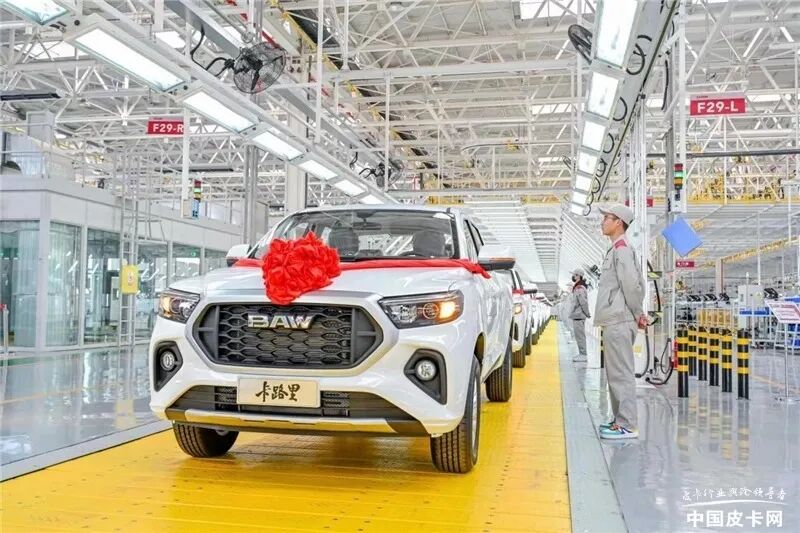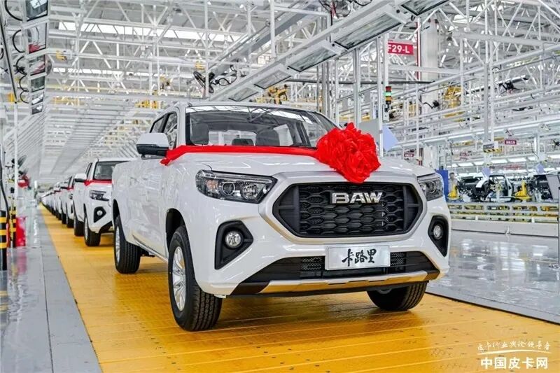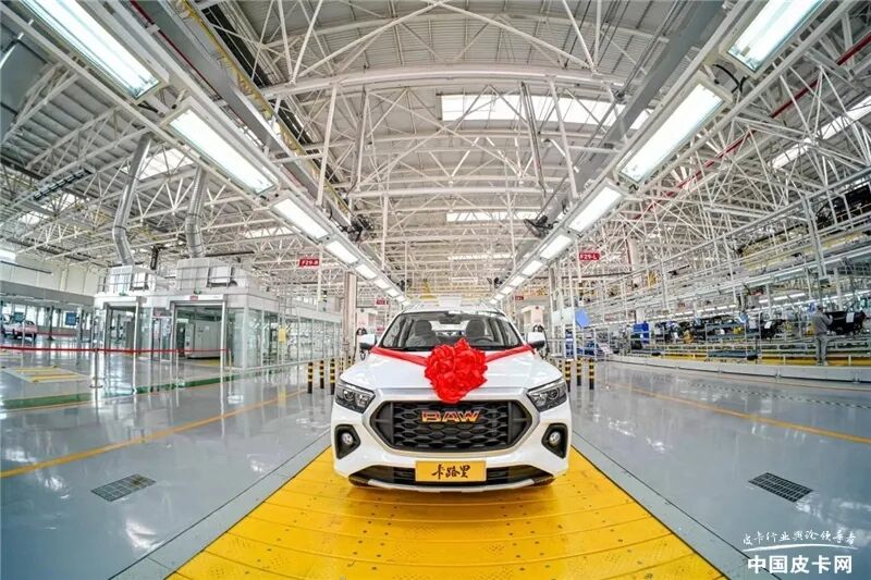 2022年11月5日,北汽制造首台6万级宽舱大皮卡“卡路里”在青岛基地正式下线。新车以高端大气的外观、乘用化的座舱空间、强装载能力的货箱、智能安全的驾驶体验,跳出传统皮卡框架设定,以全新形象向消费者宣布,家商两用多功能、多用途的全新宽舱“民生”大皮卡来了!