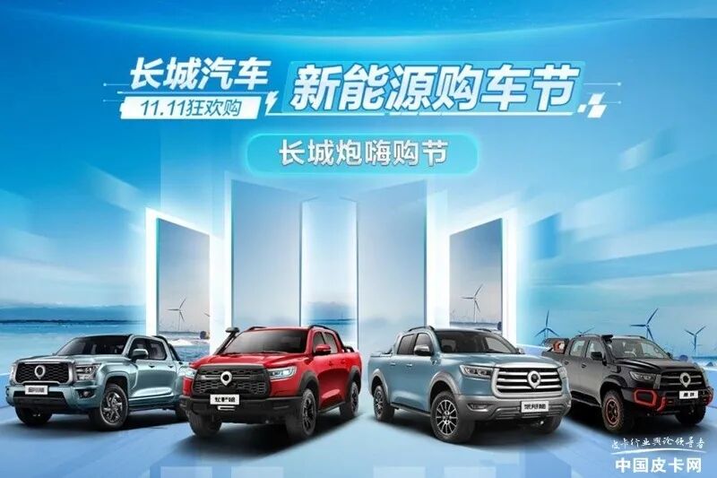 11月1日-30日,长城汽车重磅推出“长城汽车新能源购车节·11.11狂欢购”,而长城皮卡也为双十一这个特殊的消费节做足了准备:11月8日、11月10日,长城炮将在长城炮抖音、长城炮APP等平台直播间开启“双11”宠粉模式,用户在直播间9.9元下订,最高可享3000元购车抵扣金;下订用户还有机会赢取万元购车券;并有精品秒杀、福袋礼包等多重福利。
