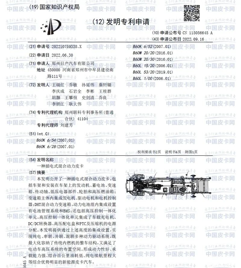 近日,我们在专利局网站获取了郑州日产的一款插电式混合动力皮卡的专利。在资料中可以了解到,该插混皮卡将会采用2.0T发动机+4DHT混动变速箱的动力总成,并且采用纵置布局,可以拥有9种动力运行模式,后驱和四驱结构均可。从专利公布的情况来看,郑州日产的插混皮卡动力部分预计已经成熟。