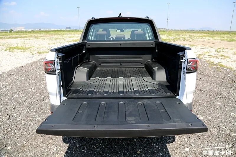 车辆尾部比较方正,有人担心承载式皮卡的货箱容积问题,但这并不是雷达RD6的短板。它的货箱内部长宽高为1525*1450*540mm,容积达到了1200L,已经是主流中级皮卡的货箱大小,所以载货能力也得到了保证。