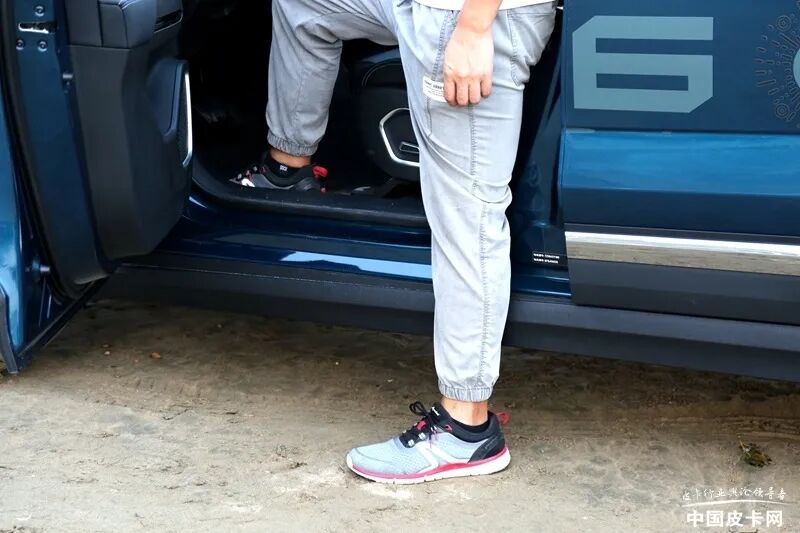 车身侧面表现出一副皮卡的专有姿态,由于采用纯电平台,这款车为承载式车身设计,货箱与座舱连为一体,也让侧面看上去更加流畅。前后轮拱上方的线条为整车增加了一丝力量感,底部黑色防擦条的设计在户外用车时能够起到一定保护车身的作用。也正是由于承载式车身的原因,雷达RD6上下车的时候非常方便,更适合当做一款家用车来使用。